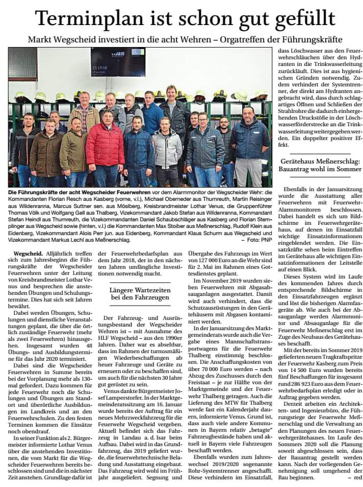 Markt Wegscheid investiert in die acht Wehren - Alarmmonitore werden eingerichtet.