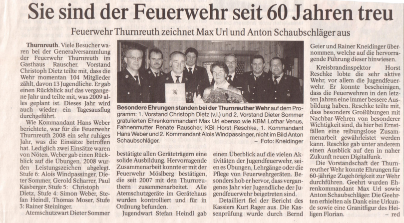 Artikel zur Generalversammlung 2009 der FF Thurnreuth
