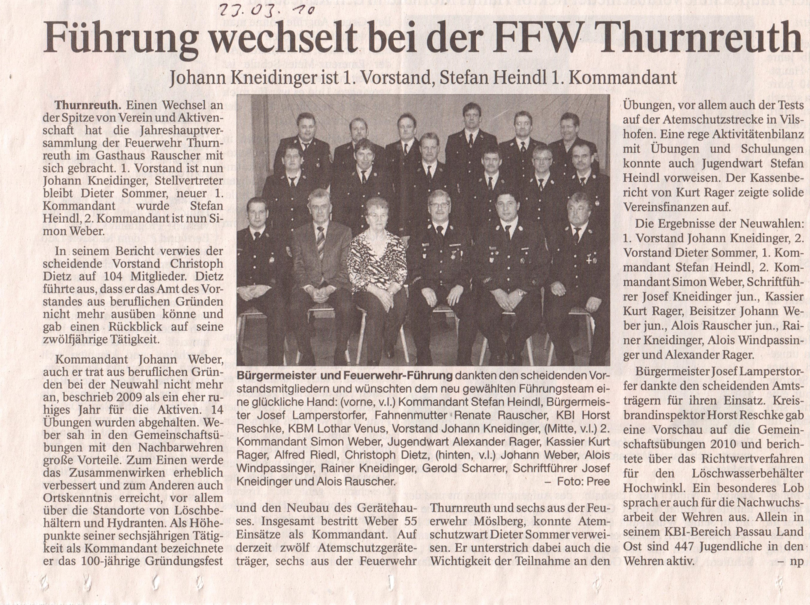 Artikel zur Generalversammlung 2010 der FF Thurnreuth