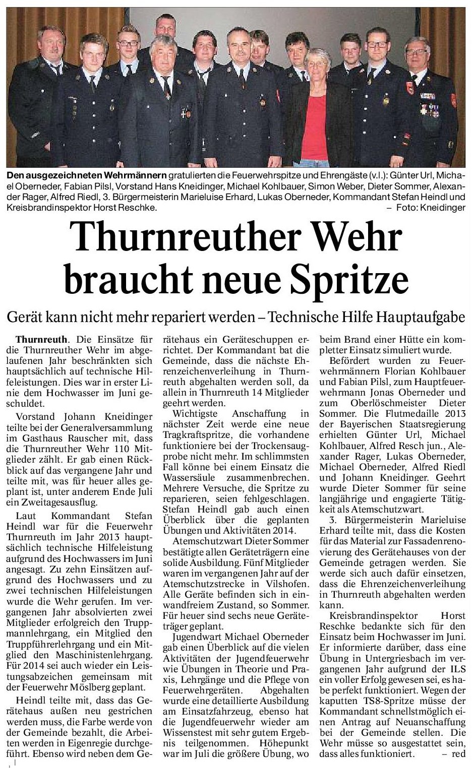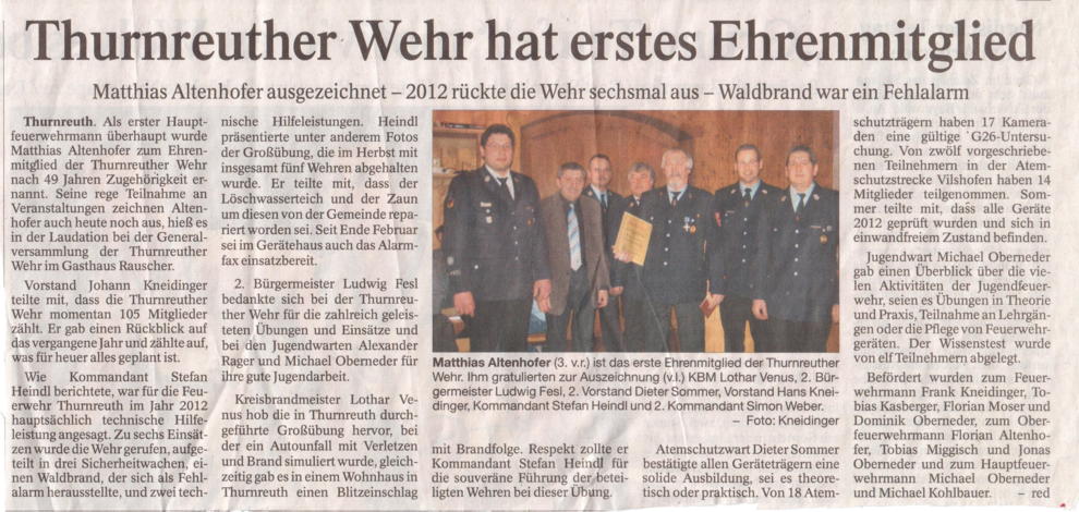 Artikel zur Generalversammlung 2013 der FF Thurnreuth