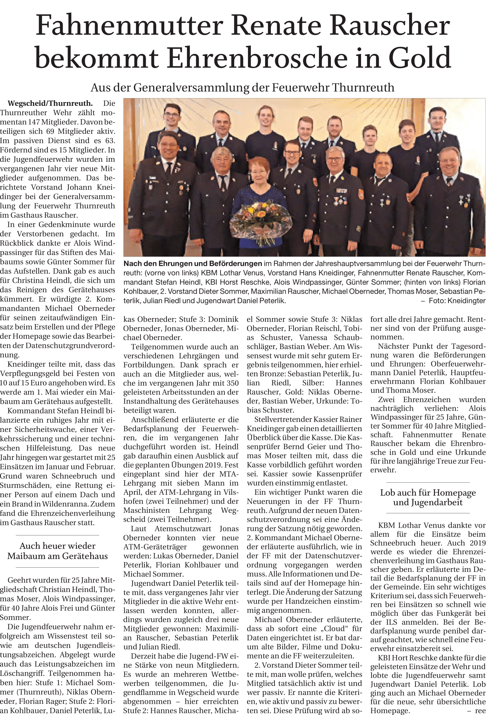 Artikel zur Generalversammlung der FF Thurnreuth am 09.03.2019 im Gasthaus Rauscher.