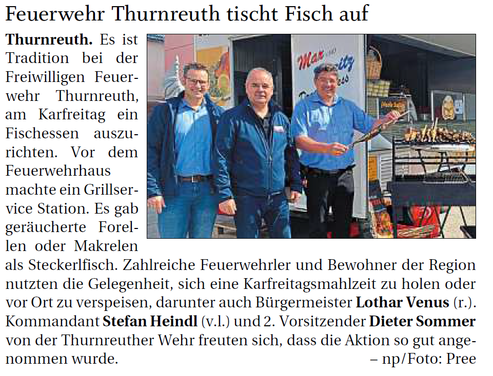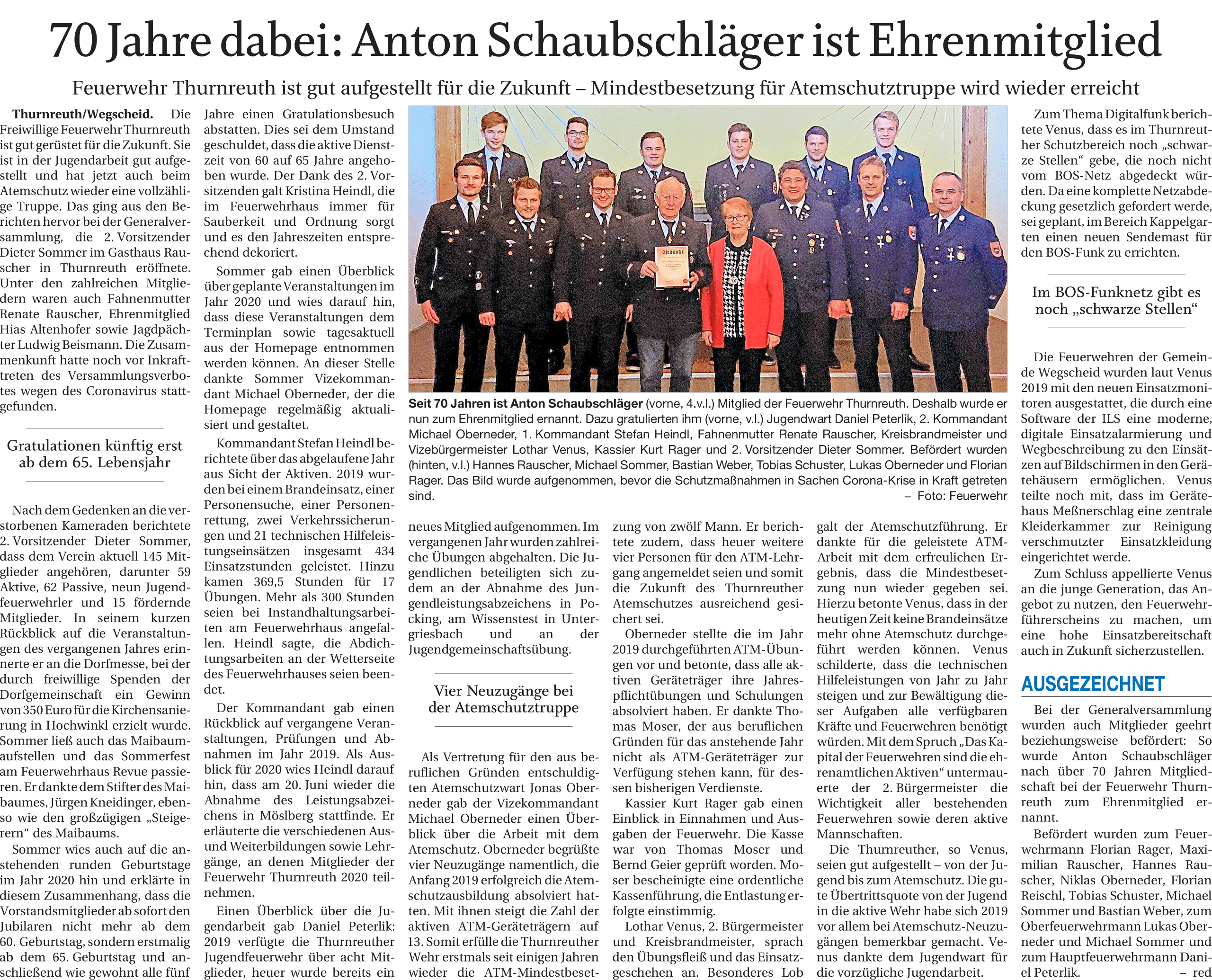Artikel zur Generalversammlung der FF Thurnreuth am 29.02.2020 im Gasthaus Rauscher.