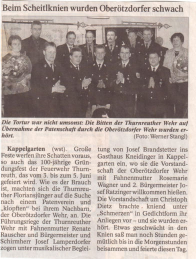 Artikel aus der PNP zum Patenbitten der FF Thurnreuth bei der FF Oberötzdorf