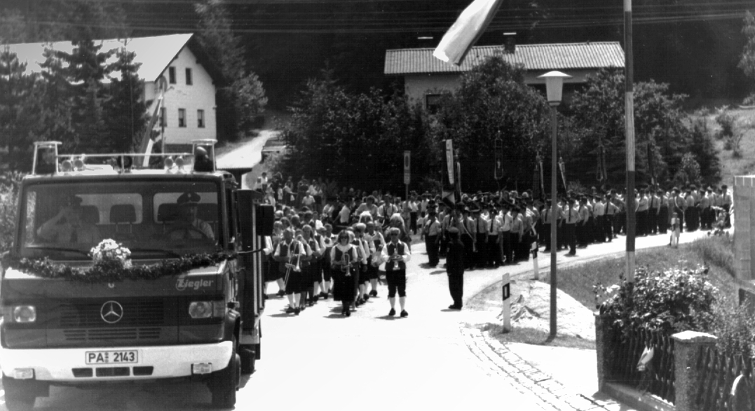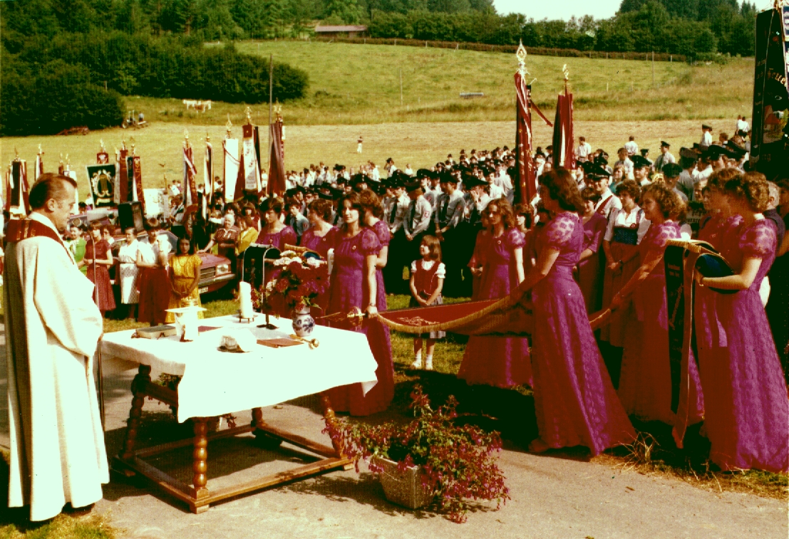 Auf der linken Seite unser Kirche in Hochwinkl, welche 1955 erbaut wurde. Bereits 1958 bei der Glockenweihe nahm unsere Wehr teil - schon hier zeigte sich die starke Verbundenheit zur Kirche.