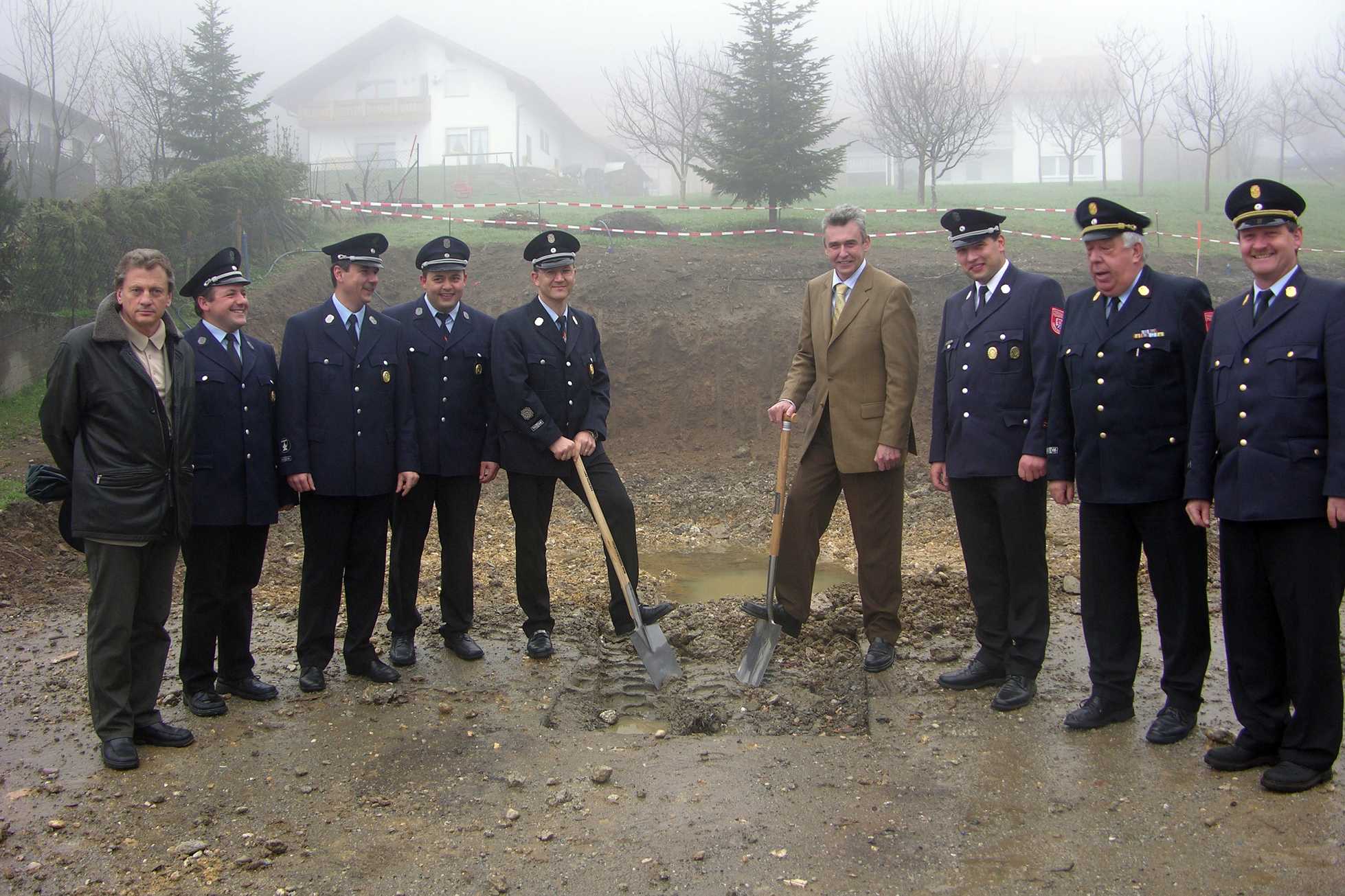 Herbst 2004 - die Zuschüsse für das neue Gerätehaus wurden genehmigt. Mit dem Abriss des alten Gerätehauses wurde begonnen. Das bis zur Fertigstellung wurde als vorübergehendes Gerätehaus die Wagenhütte beim Windpassinger Alois eingerichtet.