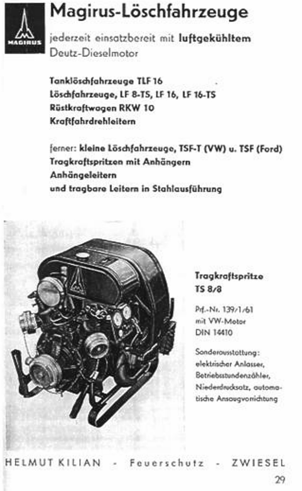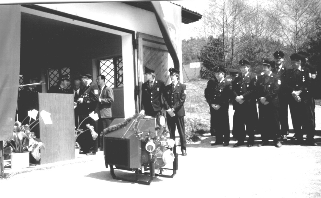 Die seit 1964 im Einsatz befindliche Motorspritze wies schon gravierende Mängel auf, ein zuverlässiger Betrieb bei einem Einsatz war nicht mehr gewährleistet. Hans Kneidinger stellte daher im Mai ´89 den Antrag auf eine neue Motorspritze, Typ TS8/8 von der Fa. Kilian. Im Sommer 1990 teilte die Gemeinde Wegscheid mit, dass der Anschaffung der neuen TS 8/8 nichts mehr im Weg steht. Der Zuschussantrag wurde eingereicht. Bestellt wurde eine daraufhin im Winter 90/91 die neue Spritze „Fire“. Geliefert wurde diese am dann Ende 1991 durch die Firma Kilian.