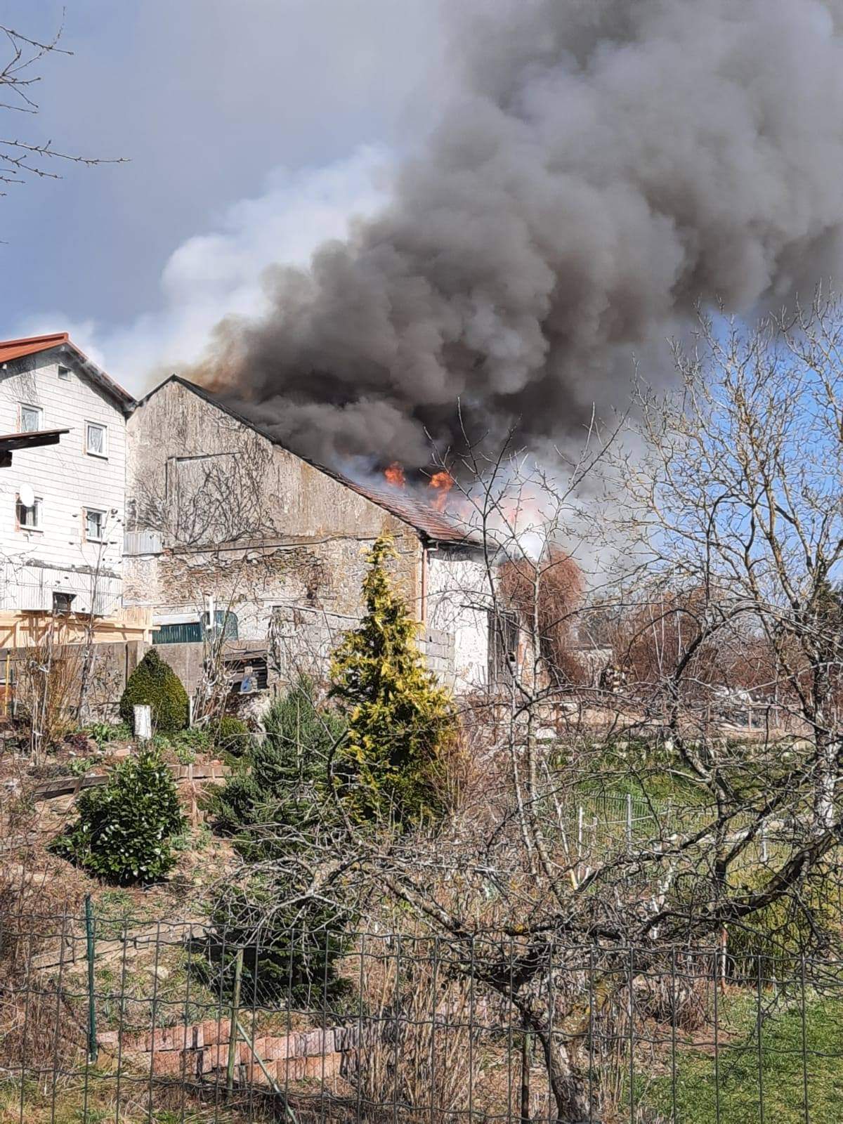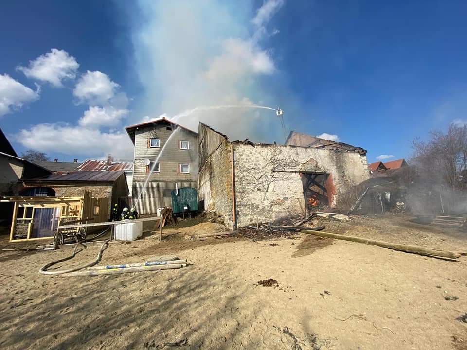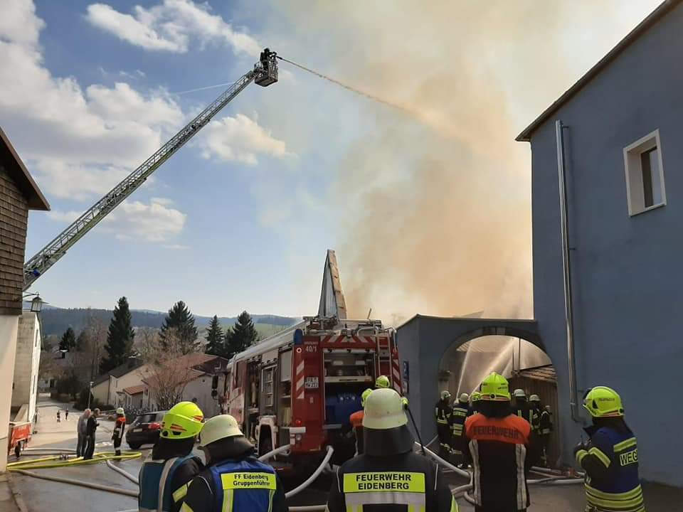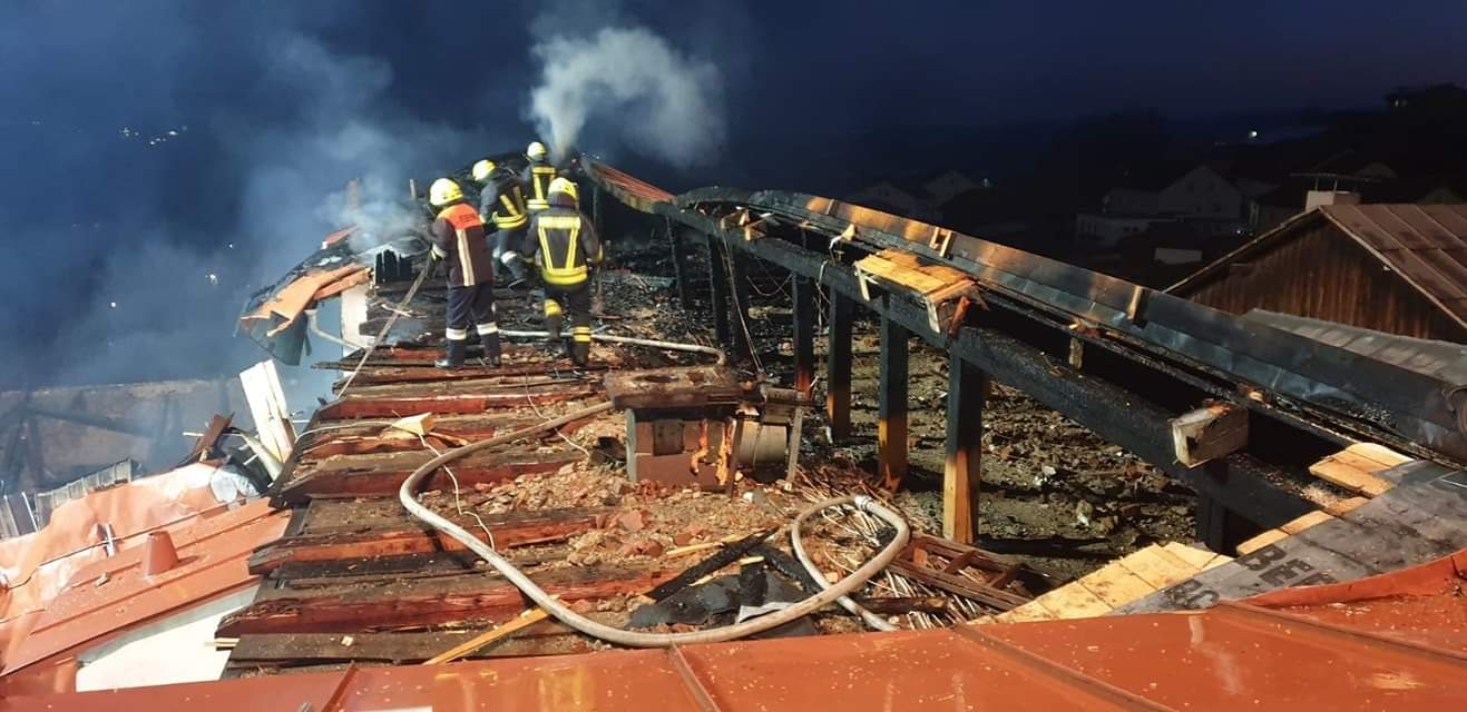 Wegscheid - Am Donnerstag, den 18.03.2020 gegen 13.30 Uhr wurde ein Brand eines landwirtschaftlichen Rückgebäudes im Ortskern von Wegscheid gemeldet. Das Gebäude einer ehemaligen Gaststätte in der Passauerstraße stand bei Eintreffen der örtlichen Stützpunktwehr bereits in Vollbrand. Größere Probleme bereiteten den Einsatzkräften die schwierige Zugänglichkeit, und vorallem das relativ neuwertige Blechdach. Mehrere Versuche scheiterten zunächst, ehe mittels Traktor und Seilwinde eine komplette Dachhälfte entfernt werden konnte. Auch die zwei dort untergebrachte Pferde konnte man in Sicherheit bringen.