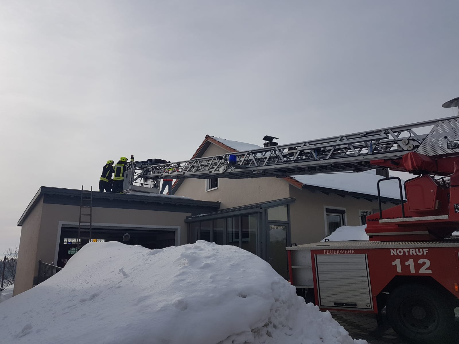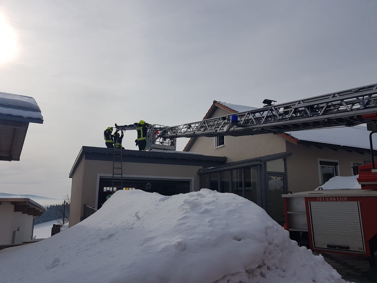 Eine Person wurde am 07.02.2019 in Thurnreuth mit der Drehleiter der FF Wegscheid von einem Dach gerettet und an den Rettungsdienst übergeben.