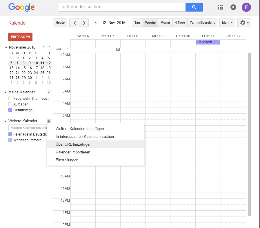Damit die Termine der FF Thurnreuth automatisch im Kalender deines Android-Smartphones erscheinen, musst du unseren iCal-Kalender zu deinem Online-Google-Kalender hinzufügen. Dazu benötigst du ein Google-Konto, welches in der Regel bei der Erstinbetriebnahme des Smartphones angelegt wird. Dein Smartphone synchronisiert sich regelmäßig mit dem Online-Google-Kalender und holt sich dann so auch die Termine der FF Thurnreuth. Solltest du noch kein Google-Konto besitzen, musst du vorher eines erstellen und dieses zu den Konten auf deinem Smartphone hinzufügen. Am einfachsten ist es, dafür den Einrichtungs-Assistenten von Android zu verwenden.