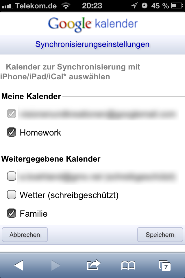Öffnet man nun die Kalender-App auf dem iPhone, werden die eigenen Google-Kalender (sofern vorhanden) bereits angezeigt – nicht jedoch die freigegebenen Kalender anderer Nutzer. Um dies zu ändern, ruft man einfach folgende URL in Safari auf: https://www.google.com/calendar/iphoneselect.